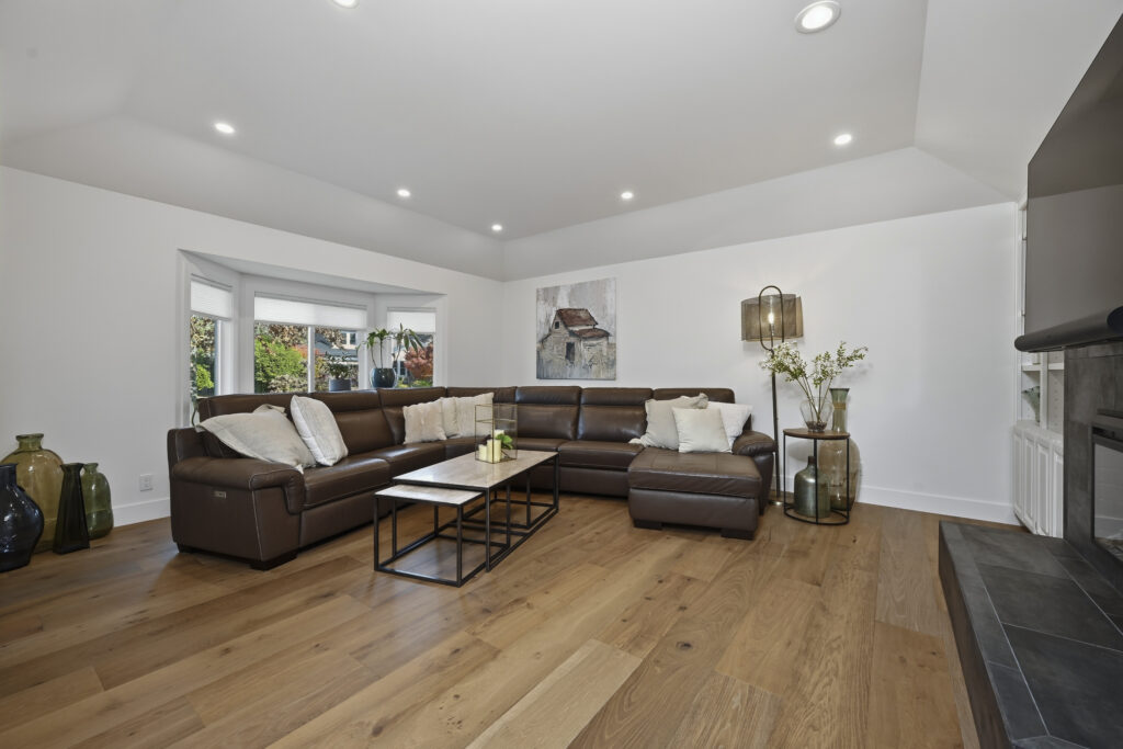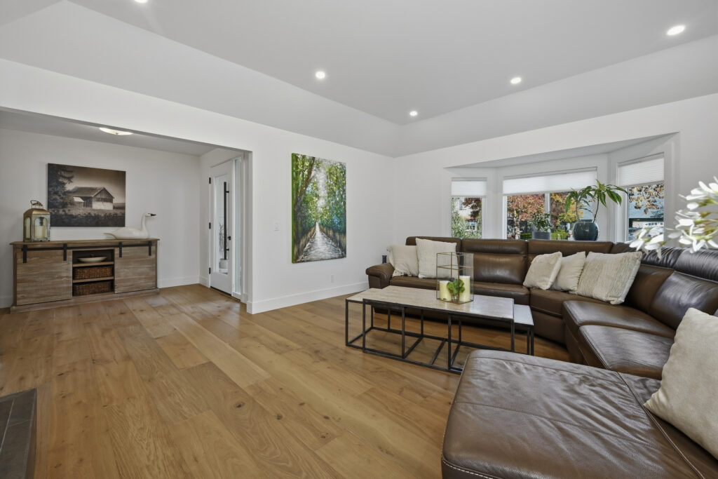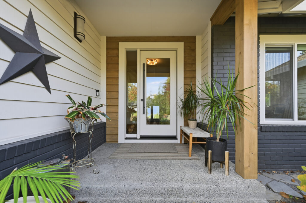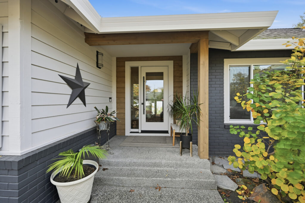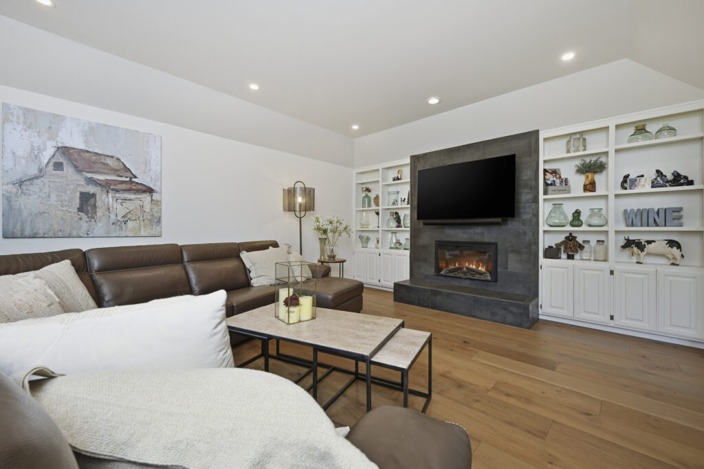 A linear fireplace was framed and installed as a built-in architectural element within the living space. Exterior work included a front porch makeover, improving both access and curb presence.